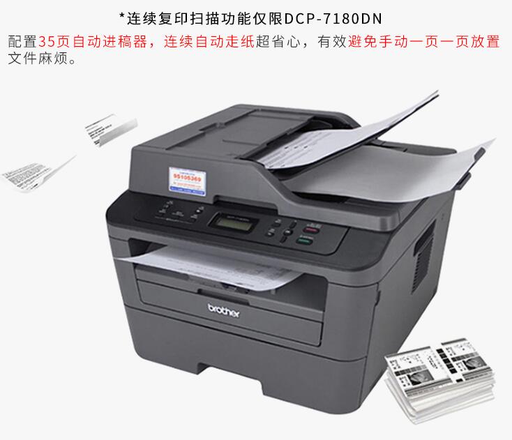 brother兄弟DCP-7080D/7180DN黑白激光打印復(fù)印掃描一體機三合一自動雙面高速打印A4家用辦公復(fù)印機打印機